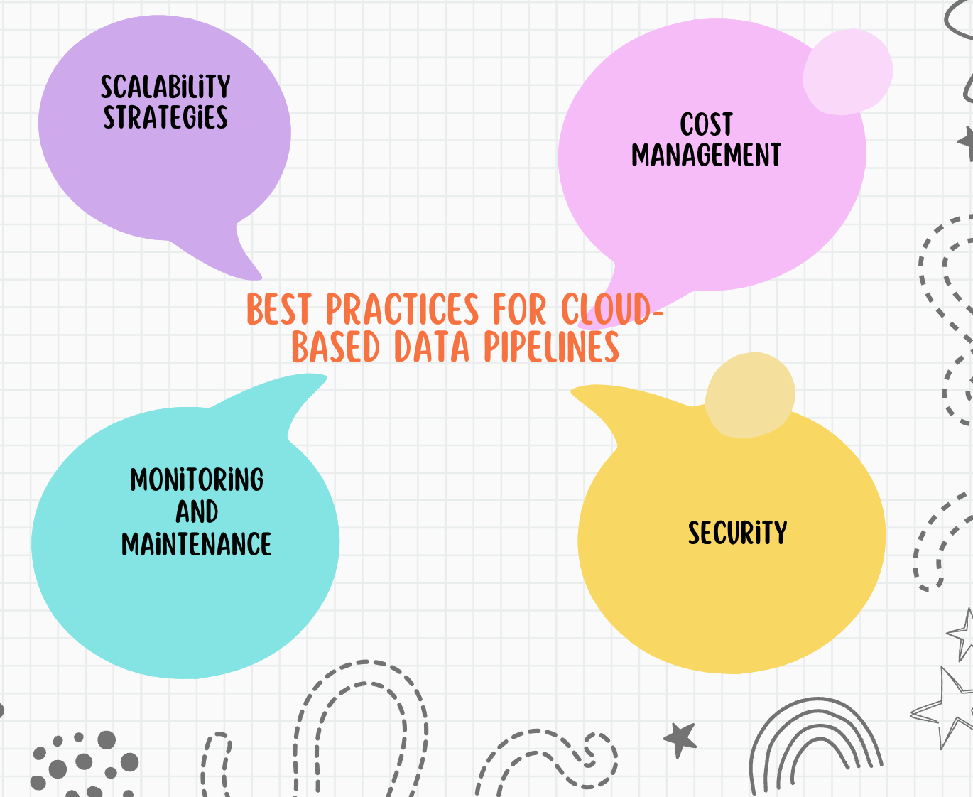 Security should be a top priority when building data pipelines in the cloud. Implement robust encryption for data at rest and in transit, and make use of each platform’s security services.