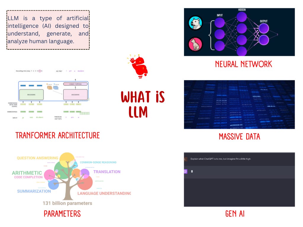 - LLM (Large Language Model): A model trained on vast amounts of text data (e.g., GPT).